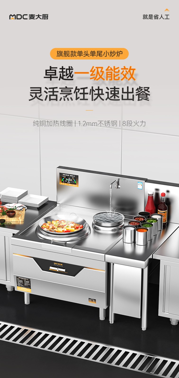 麥大廚旗艦款單頭單尾小炒爐商用8-15kw