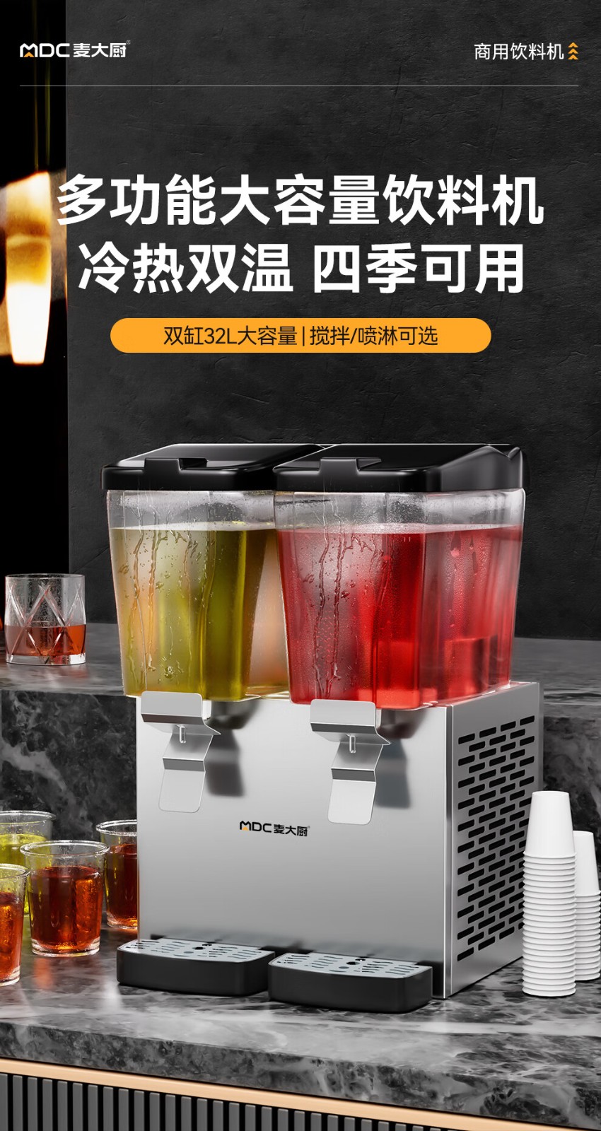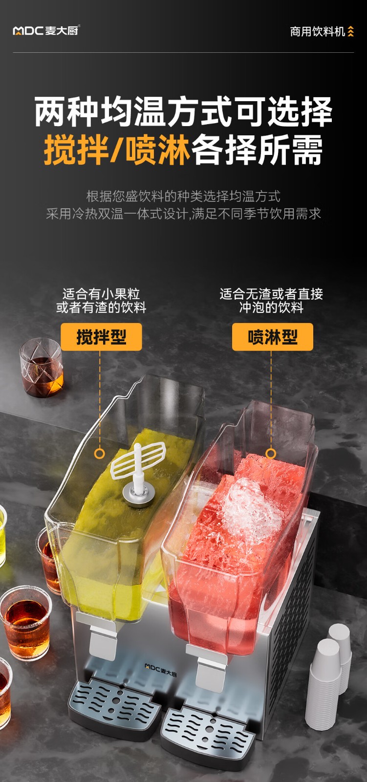 麥大廚220V標準款雙缸冷熱攪拌式飲料機商用235W