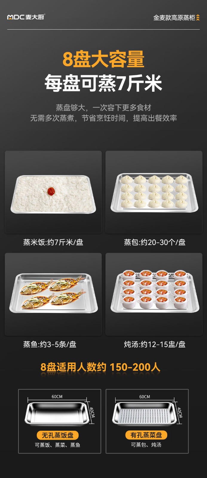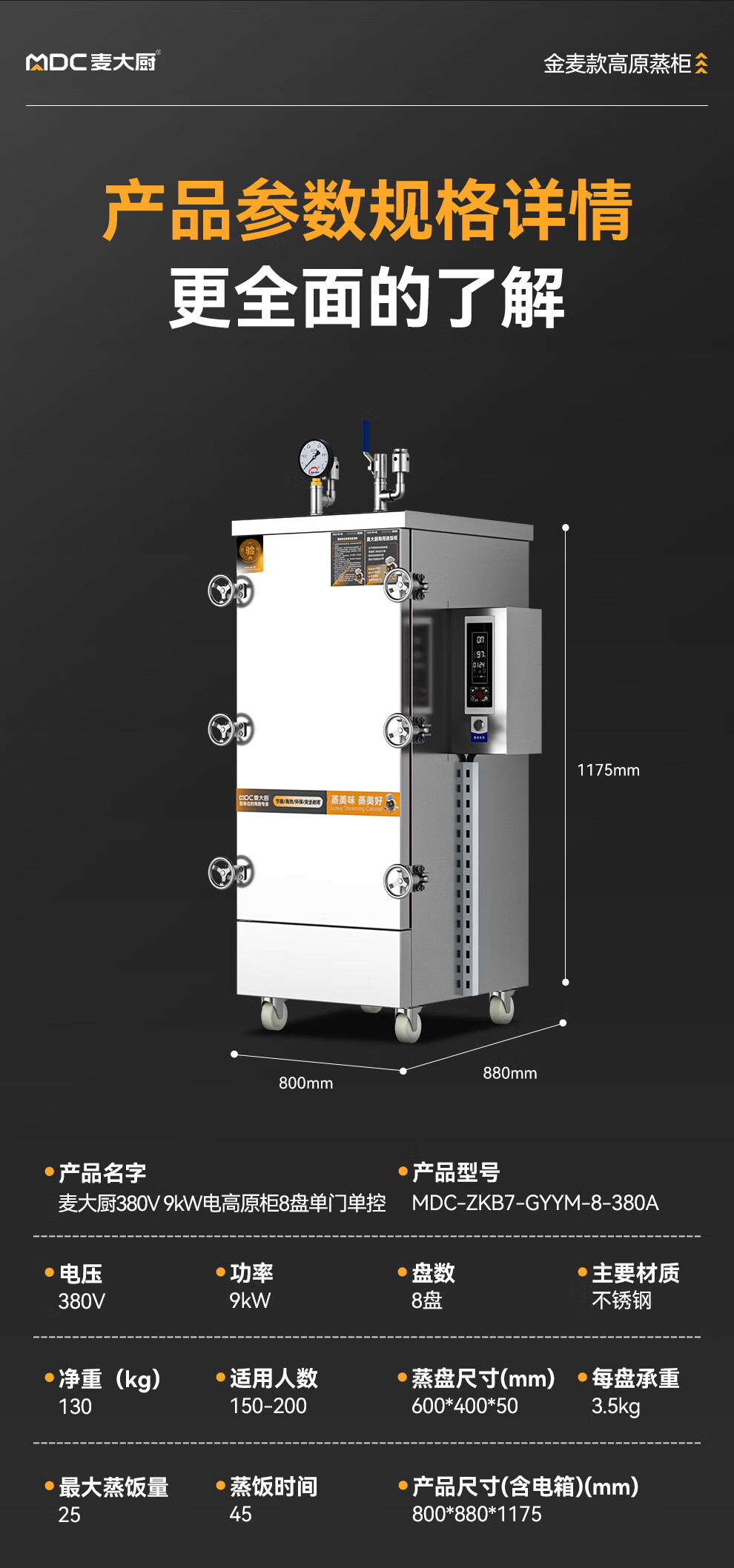 麥大廚金麥款8盤電熱380V單門高原蒸柜9KW