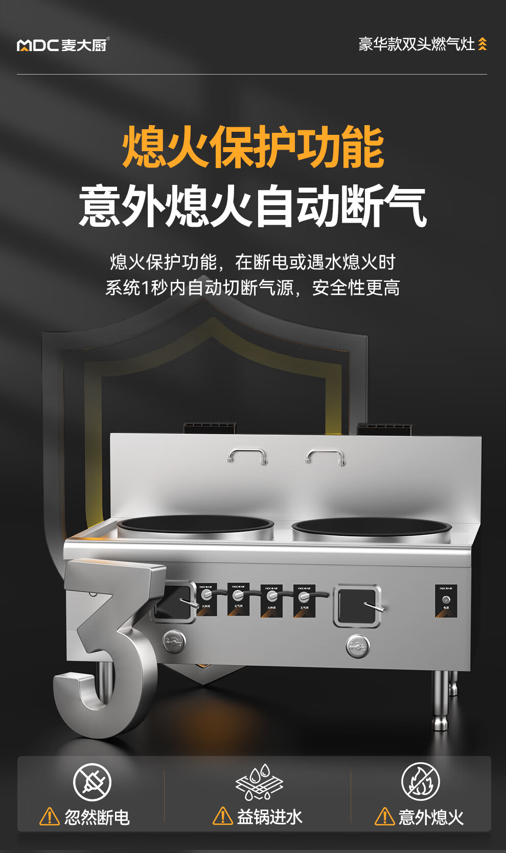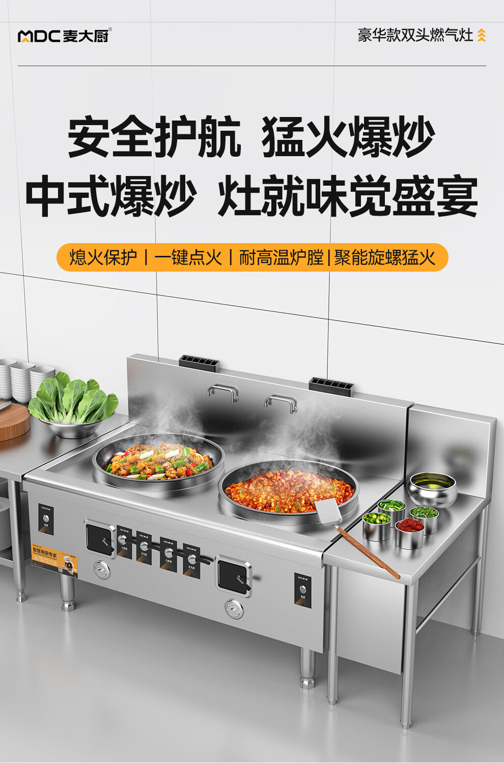 麥大廚燃氣猛火大鍋灶豪華款燃氣雙頭大炒爐900