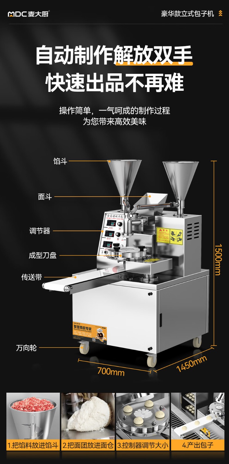 麥大廚多功能豪華款立式雙斗數(shù)控包子機(jī)2.0kw