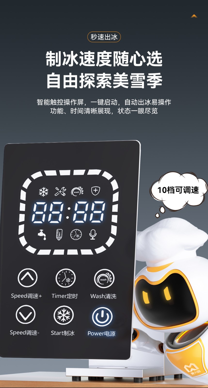 麥大廚雪花制冰機商用小型網(wǎng)紅雪花冰沙機旗艦款觸屏水冷300KG